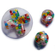 - Cast with glitter inside, available in a variety of colors