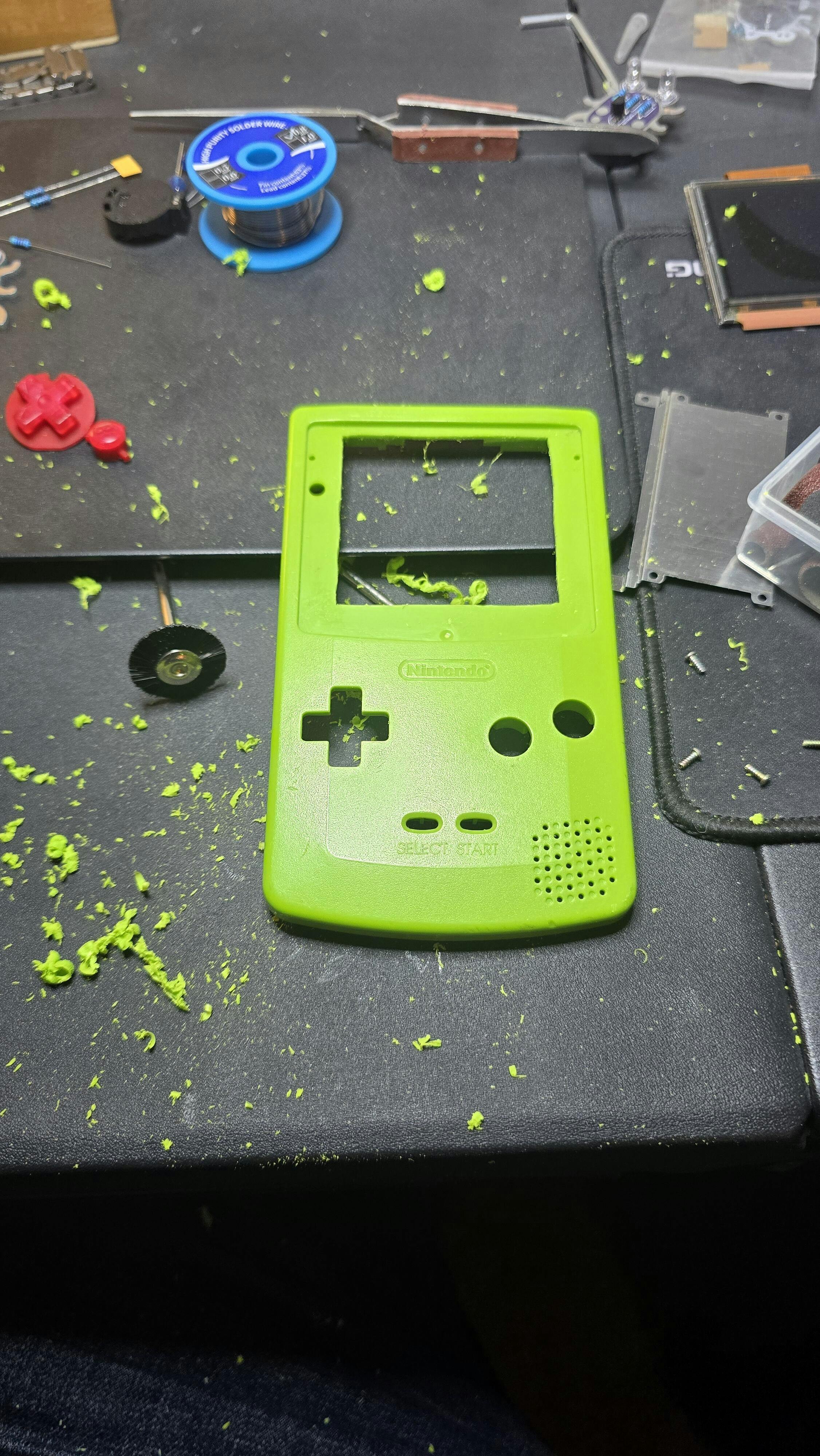 - Some shell trimming is required to accommodate the larger LCD. A trim guide can be purchased here.